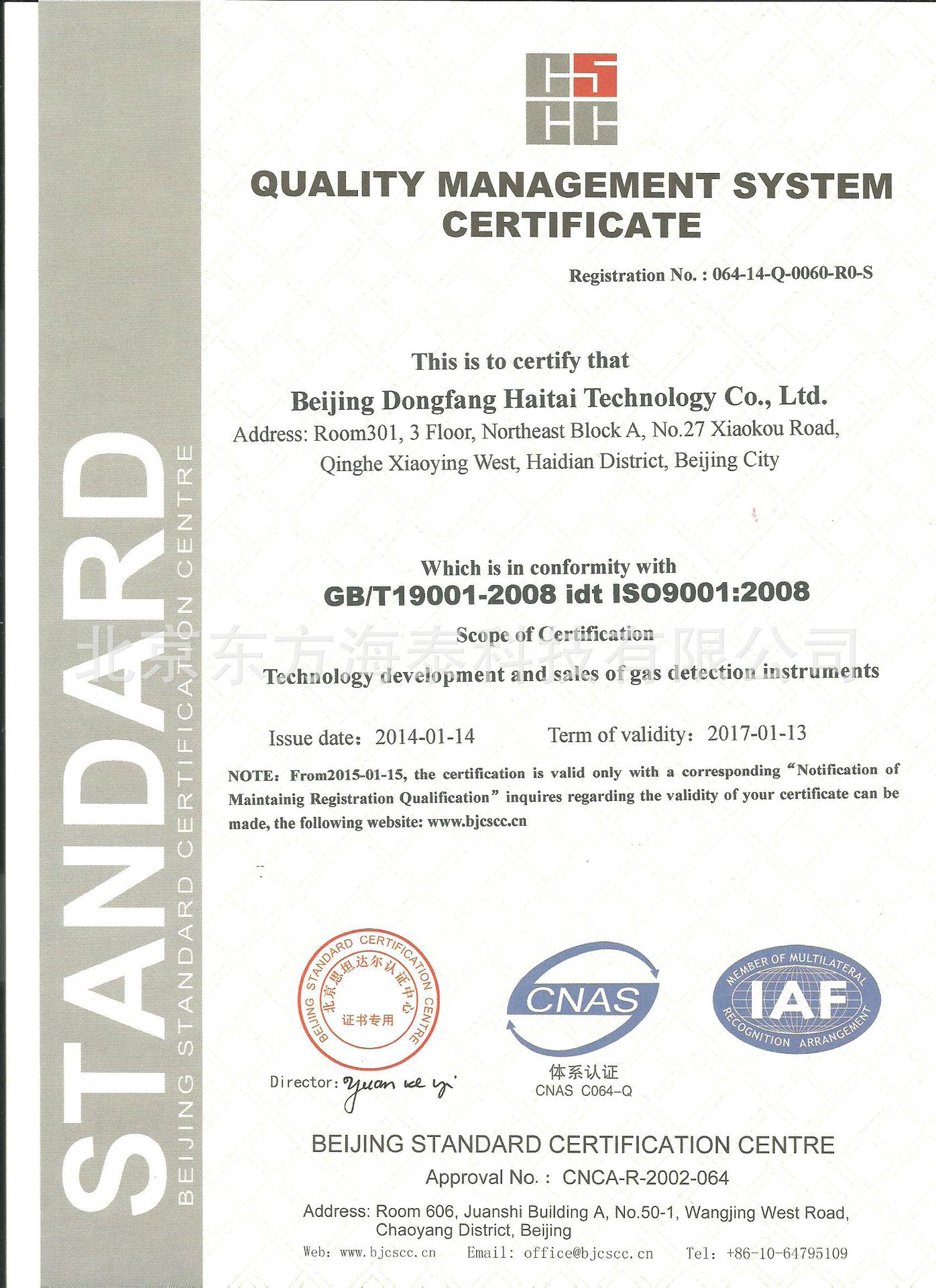 公司保有完整的证书,还通过了ISO9001quality体系认证