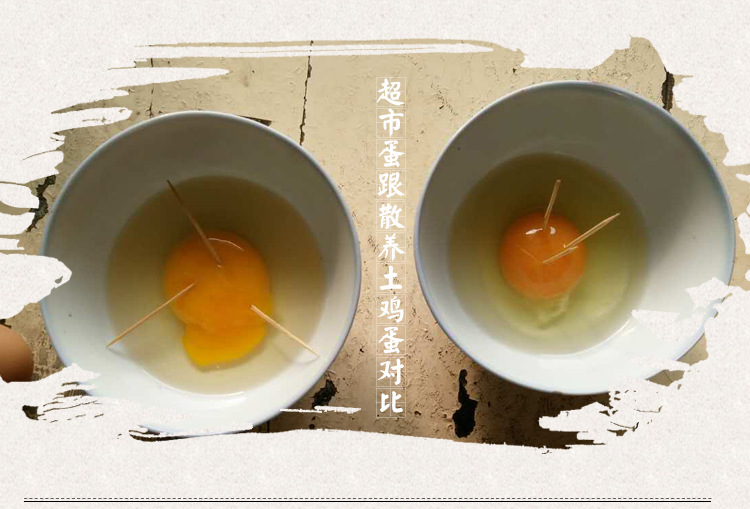 2土鸡蛋打开蛋壳,蛋清透明且粘稠,蛋黄略带绿色,蛋黄呈金黄色,漂浮在蛋清上,不沉到底部,可以在蛋中间插入牙签蛋黄站起来,不会掉下来,喂鸡蛋。打开蛋壳,蛋清更含水,蛋黄沉到底部,插入时牙签会歪斜,并且不能承受晃动。