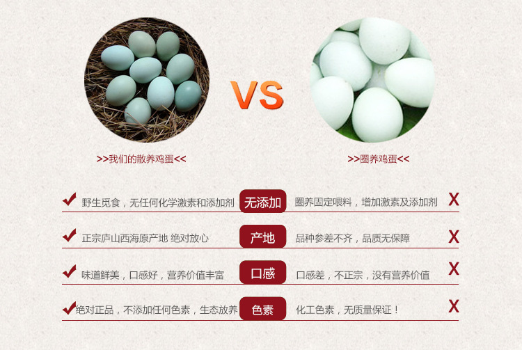 1土鸡蛋个略小,蛋壳坚硬而厚实,钙含量高,饲料蛋大,蛋壳又脆又薄。
