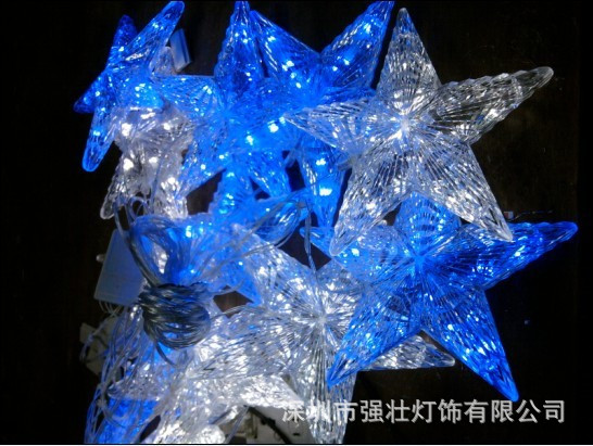 2.简介:该产品是注塑成型的透明,网状五点星形吊坠灯串,兼具闪烁效用。它用到高质量的铜线,纯正的白色led,外壳为丙烯酸材质。生产过程繁杂,质量好。外形美观等优点,受广大新老客户的喜爱。