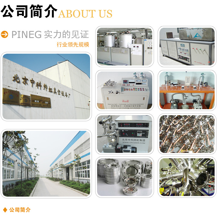 北京中科帅虹真空设备厂是真空行业的高科技企业,主要是陶瓷,玻璃和金属密封,真空机组设备,真空加工,真空设备销售等。产品为:真空电极/陶封电极/陶瓷金属化封接/玻璃金属化封接/真空观察窗/玻璃观察窗/真空密封插座/金属波纹管/真空波 纹管/真空法兰/转换法兰/卡箍卡钳/转换接头/真空机械加工/真空非标加工/真空标准件/真空微调阀/真空挡板阀/真空插板阀/真空球阀 /真空全金属阀/真空三通阀/真空蝶阀/爱德华真空泵销售维修/中韩合资企业真空泵销售维修/旋片式真空泵/扩散泵/分子泵/电阻式真空计/热偶真空计/电离复合真空计/金属波纹管/真空泵油/扩散泵油/分子泵油/275号油/真空油脂/30号真空封泥/7501真空硅脂/4号真空胶/真 空驱动器/磁力干/机械抓手/位移台/直线驱动器/分子筛吸附井/油污过滤器/扩散泵真空机组/分子泵真空机组/激光管排充气设备/无极 灯真空设备/冷阴极霓虹灯制作设备我们公司销售真空设备,真空干燥箱。真空(手动,气动,电磁)挡板阀,角阀,直通阀,调节阀,差压阀,球阀,排气阀,蝶阀,挡板阀。提供真空(CF,KF,iso,lf)弯头,三通,四通,转移法兰,电极法兰,波纹管,油雾过滤器,吸附阱,夹钳,观察窗和数十个数以千计的真空连接器。承接真空室设计,真空管道设计。承接真空炉,单晶炉,生长炉,镀膜机,烘箱,脱泡箱,浸渍箱等真空室,真空罐的加工。可以开展真空低温,高温和泄漏检测测试。