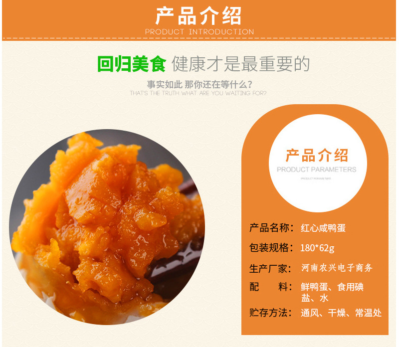 神丹油黄咸蛋黄选用我们自建的饲料厂和育种场生产的高品质鲜鸭蛋,结合传统的蛋制品加工工艺和先进的技术设备,从而生产出沙润出油,粒的蛋制品香精,晶莹剔透,佳肴又营养。