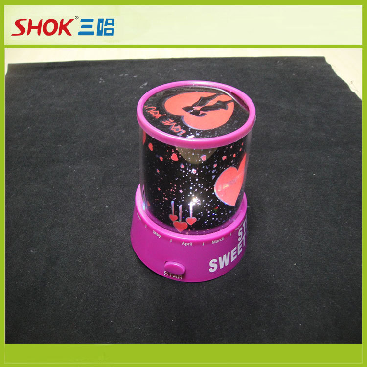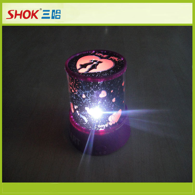 [产品功用]该投影灯可以在星空中投射出明亮的星辰和一对恋人的图案。