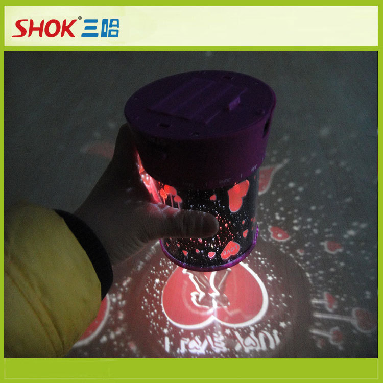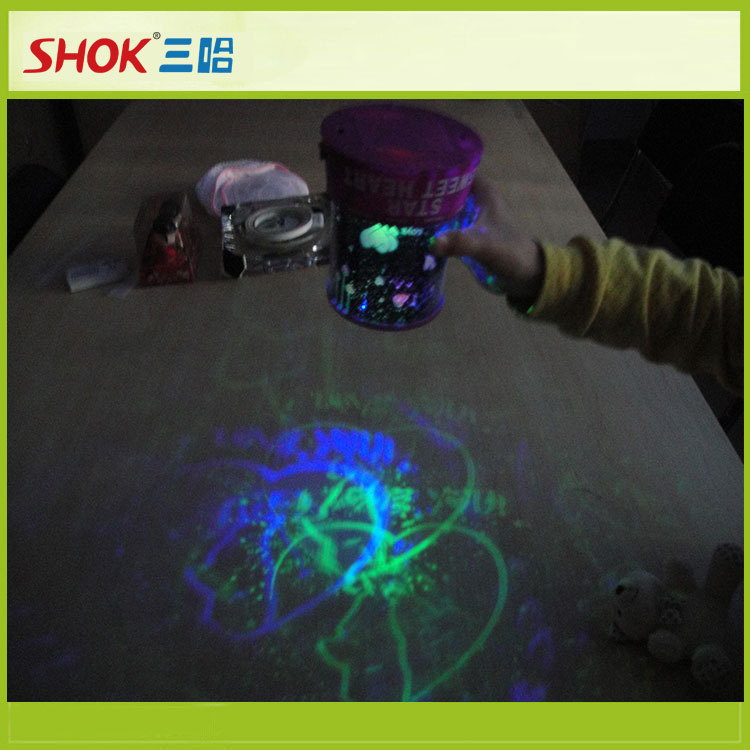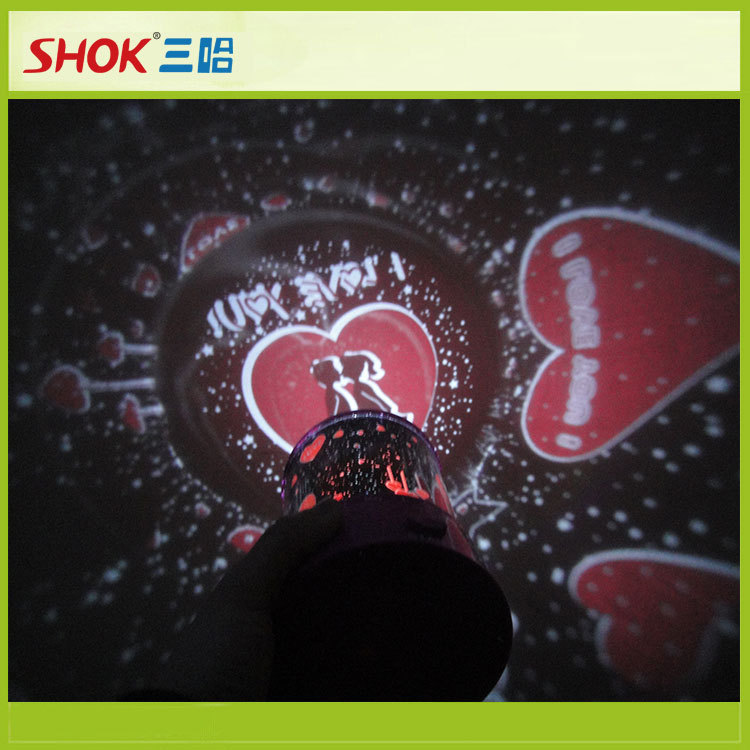 [产品功用]按键开关操纵发光投影,使用高亮度led灯,投影图案明晰,明亮,多彩。(可制作幻灯片)