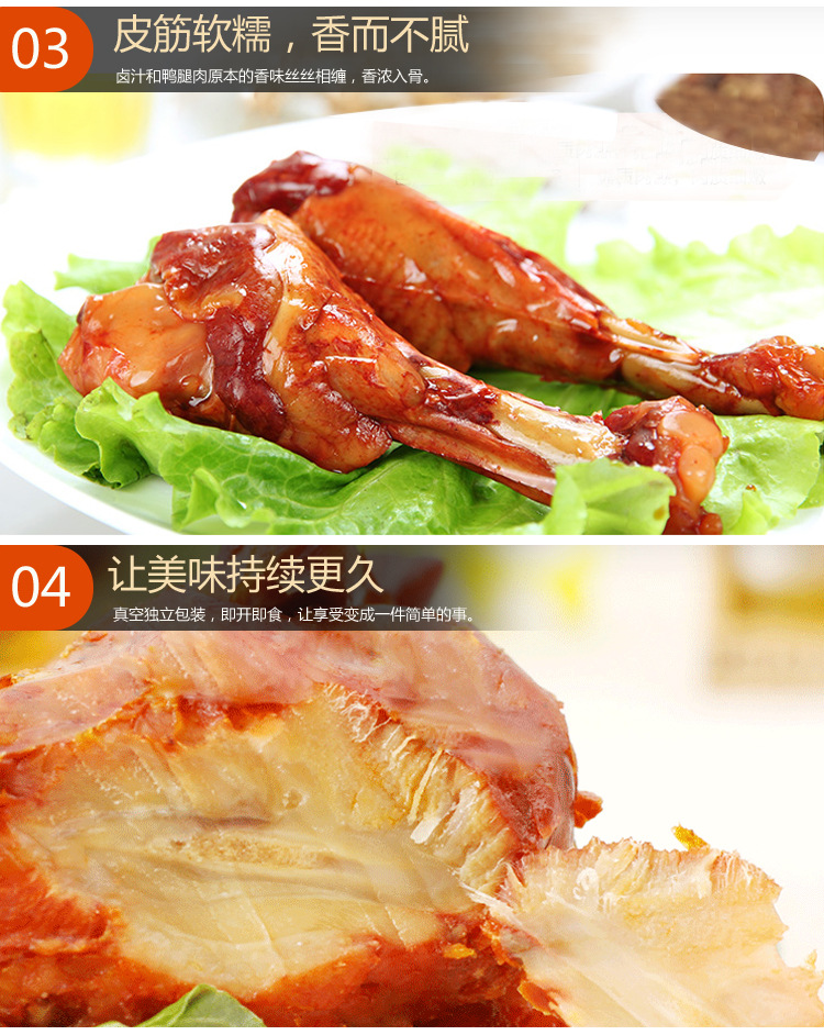 作为制造商,我们严苛选择食材,选择新鲜的鸭子加工并制作,老汤用火烧开,其佳肴就在骨头上。每只鸭腿都是单独真空包装的,日期是新鲜的,以保证您手中产品的质量。