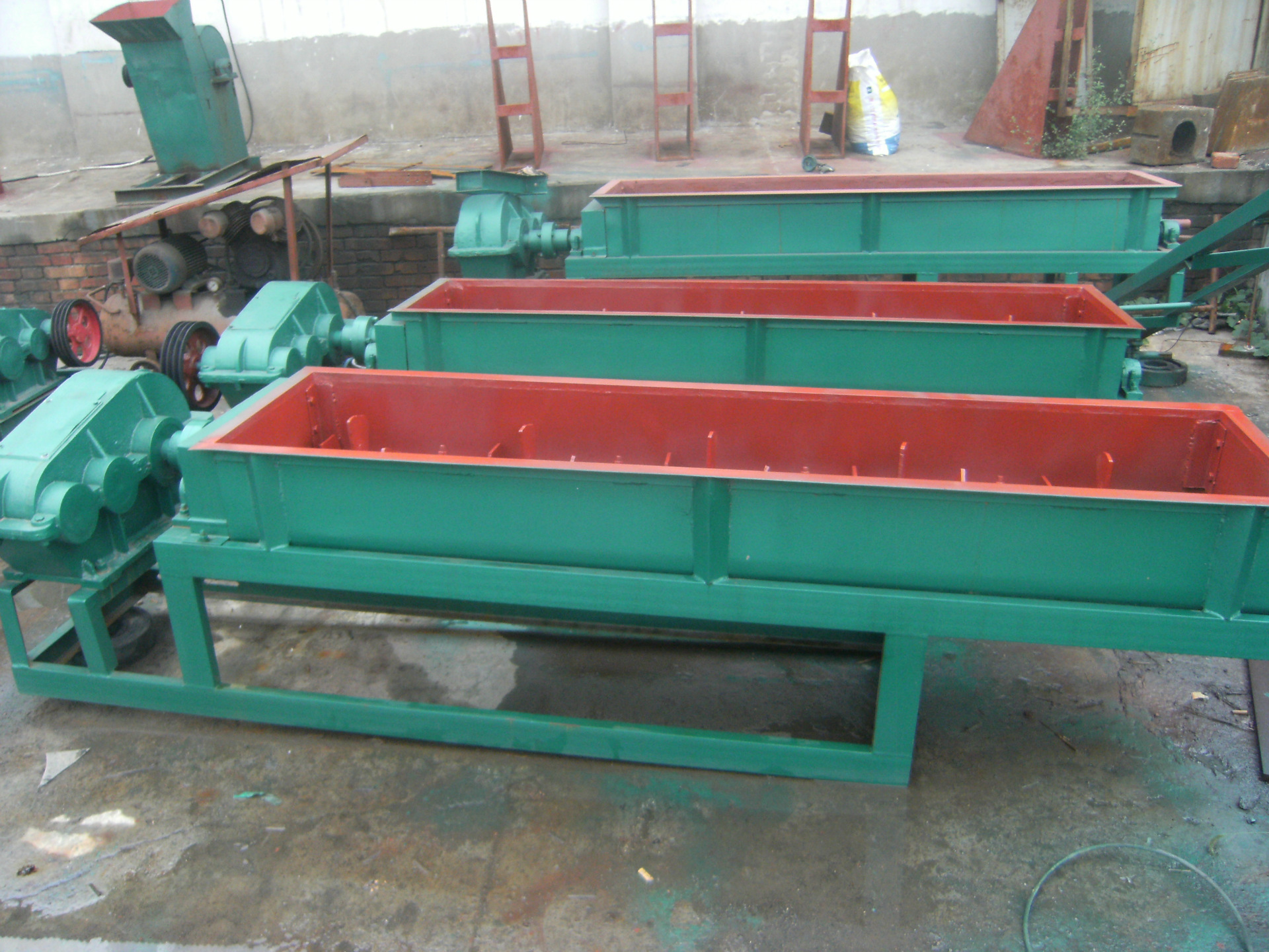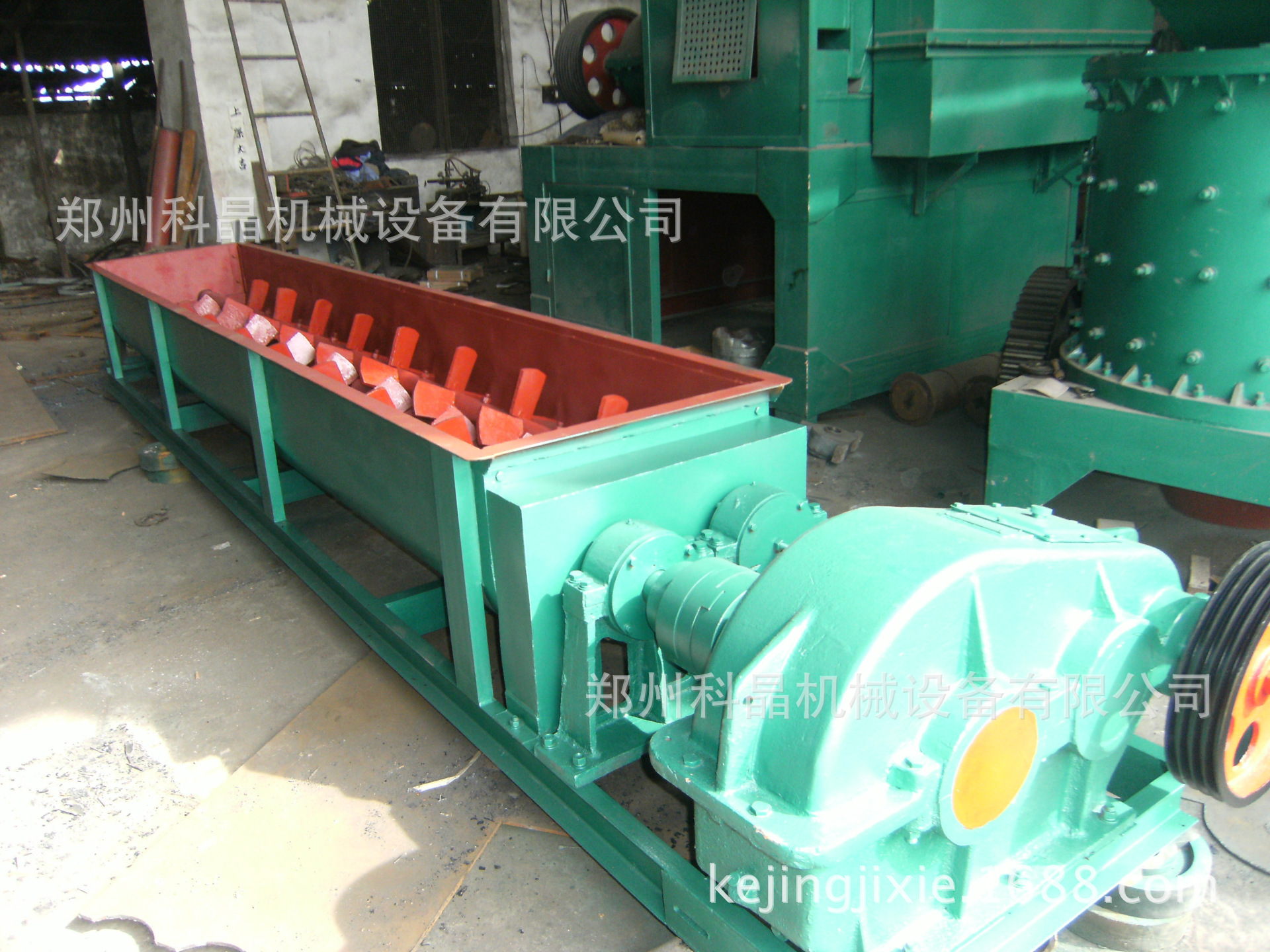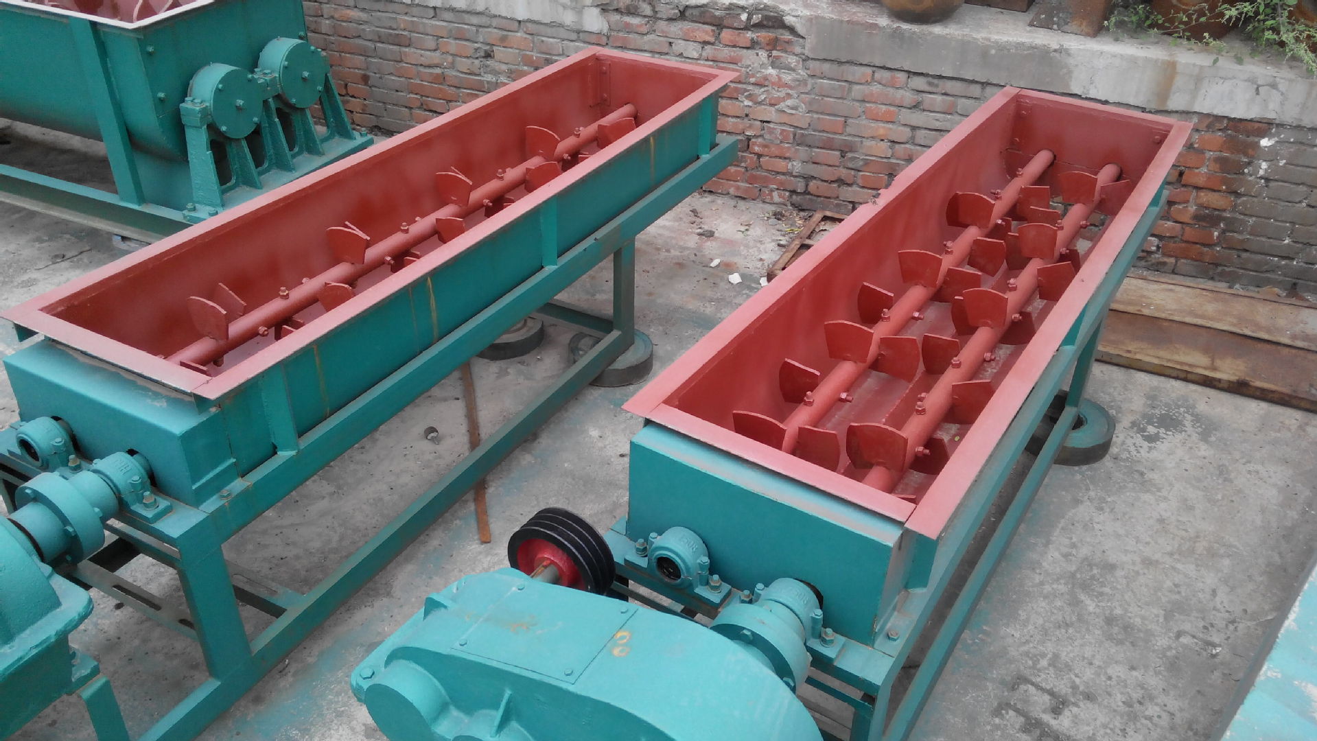 2螺旋轴总成是双轴搅拌机的主要组件,其组件主要包括左右螺旋轴,轴承箱,轴承套,轴承盖,齿轮,链轮,油杯,叶子等零件。