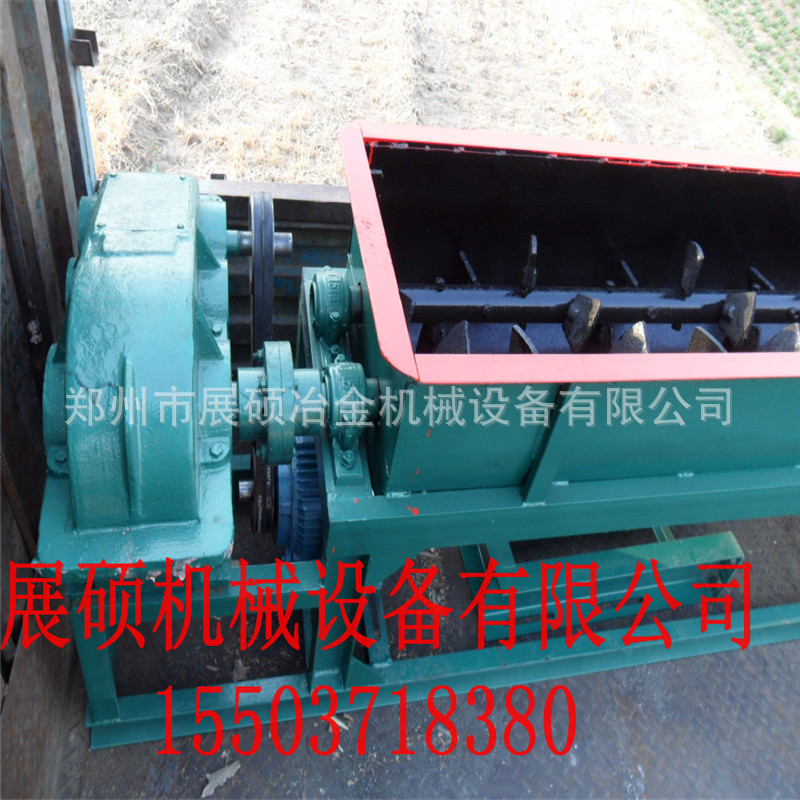 双轴混合机具备连续搅拌,混合和输送物料的机能。其工作过程是:马达通电后,由三角带带动大带轮旋转,通过操纵使离合器进入工作状况,并带动两个搅拌轴反向旋转,旋转时,两次旋转的方向是从内到外,物料被搅拌,物料的流动是由搅拌叶片在旋转时的推力形成的,螺旋进发以搅拌,混合,挤压和均质化物料。物料进入搅拌槽最终,物料通过漏料箱进入接收带,最终抵达下一个加工装置。物料在搅拌槽中均匀混合后的停留时间主要取决搅拌叶片和铲刀的视角。如果搅拌叶片的出发点大且轴速度快,则物料会很快从搅拌机中送出,但此时物料的均匀性很差。反对因此,应根据混合后物料的均匀性和工艺抵消来确定最佳的物料混合时间。