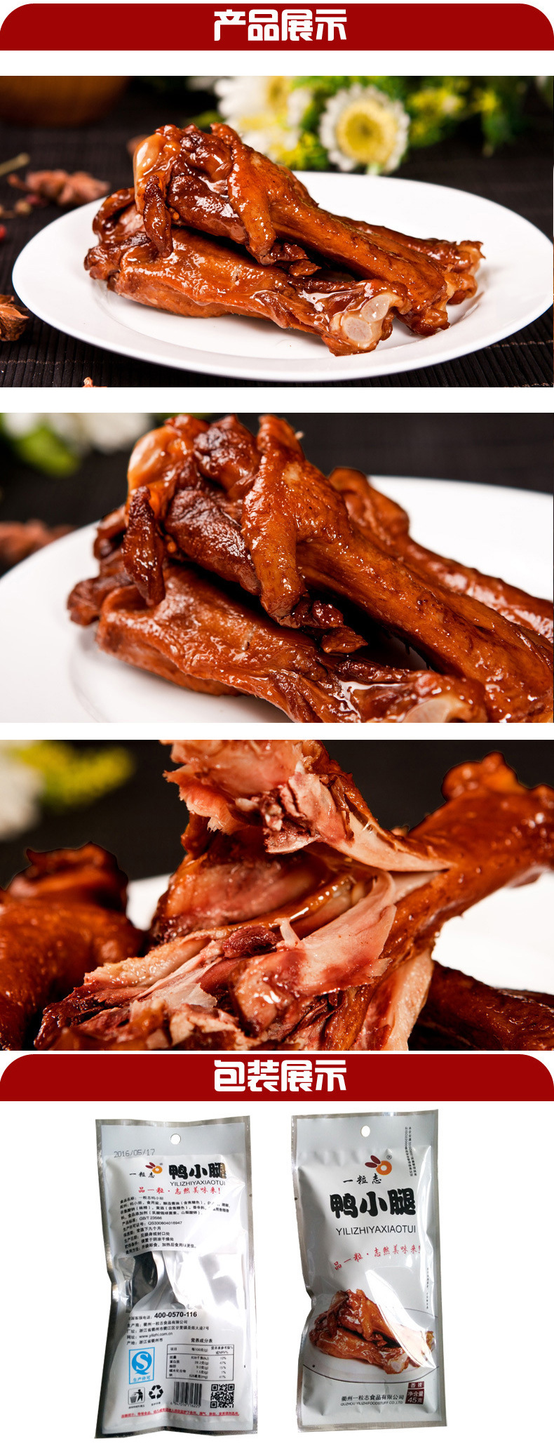 - 原料和配料鸭小腿,食用盐,酿造酱油,白砂糖,辣椒,味精,黄酒