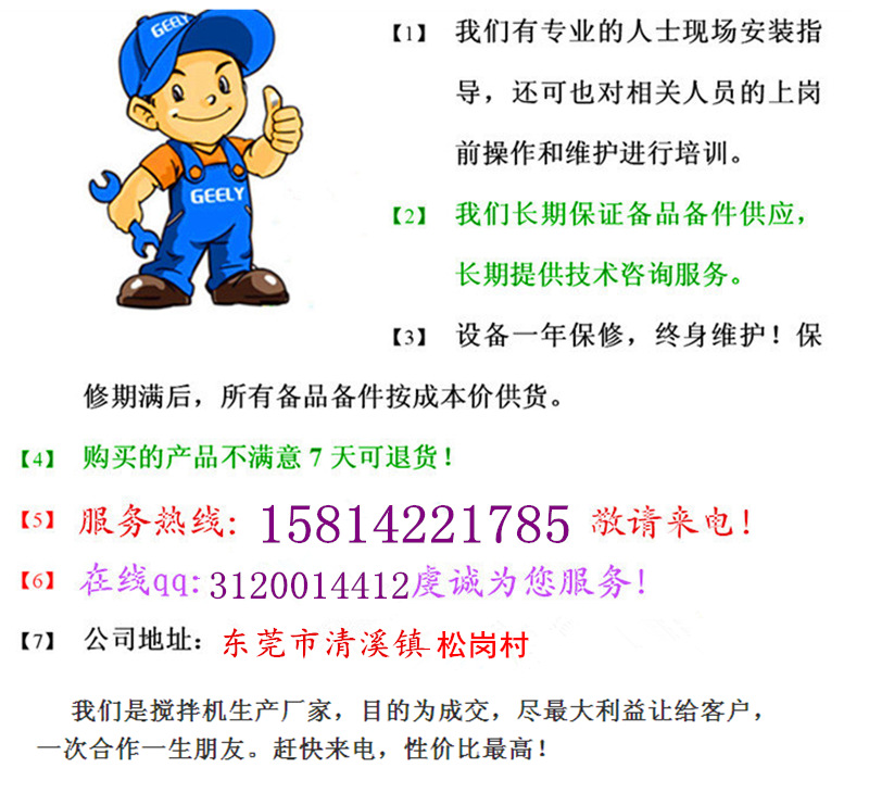 售后服务:公司派技术人员到现场指导设备安装,调试和操作人员培训;