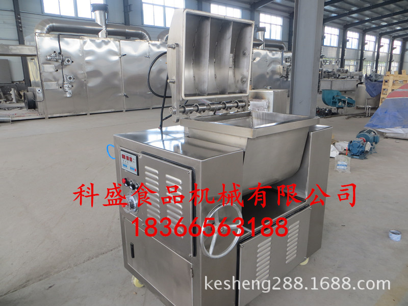 与一般而言混合机相比之下,真空混合机具有以下优点:1.真空混合机抽真空后,面粉颗粒充分膨胀,吸水率大。相同的面粉可以产生5%-7%的面团2。真空搅拌机抽真空后,面团就会变硬,特别是在夏天,面团不会自然苏醒。3。面团切开后无气泡4。将面团制成不粘在皮肤上,不会毁损皮肤的面团,并且该面团是透明的。它是速冻水饺,填入汤袋和水晶饺子.5的首选。具有自动外观机能,我公司是一家专业生产真空捏合机的厂家,有现货供应,其中25袋一袋面条真空搅拌机,50袋两袋面条真空搅拌机,100袋四袋面条真空搅拌机150六袋面条真空搅拌机