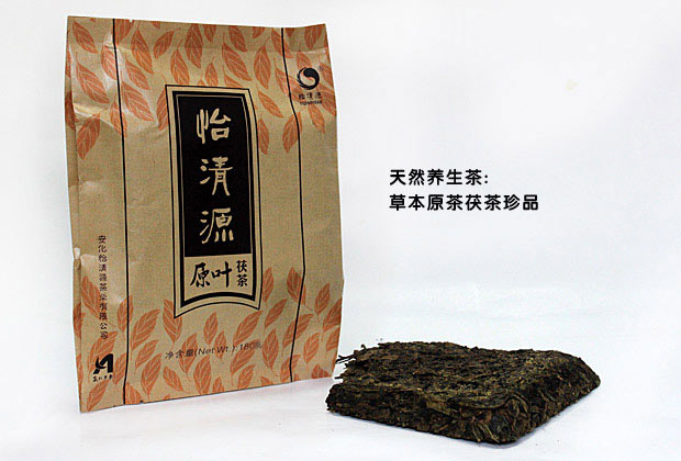 怡清源原叶茯茶轻便装是茯茶的宝物,重180克,每天8-12克,可连续使用15-22天;包装清爽简练,解释安化黑茶古雅自然,材料为防潮牛皮纸袋,产品包装已通过QS认证。
