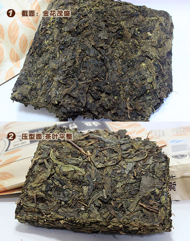 原叶茯茶使用云台山大叶作为原材料,比一般的茯茶原材料更好;并保存叶片的原始形状。传统的茯茶茶更易碎,并且有更多的茶梗。原叶茯茶颠覆了传统的“茶碎”技术,克服了开花的不方便。“金花”兴盛发展,并形成独特的风味和特点,这就是茯茶中的产品。