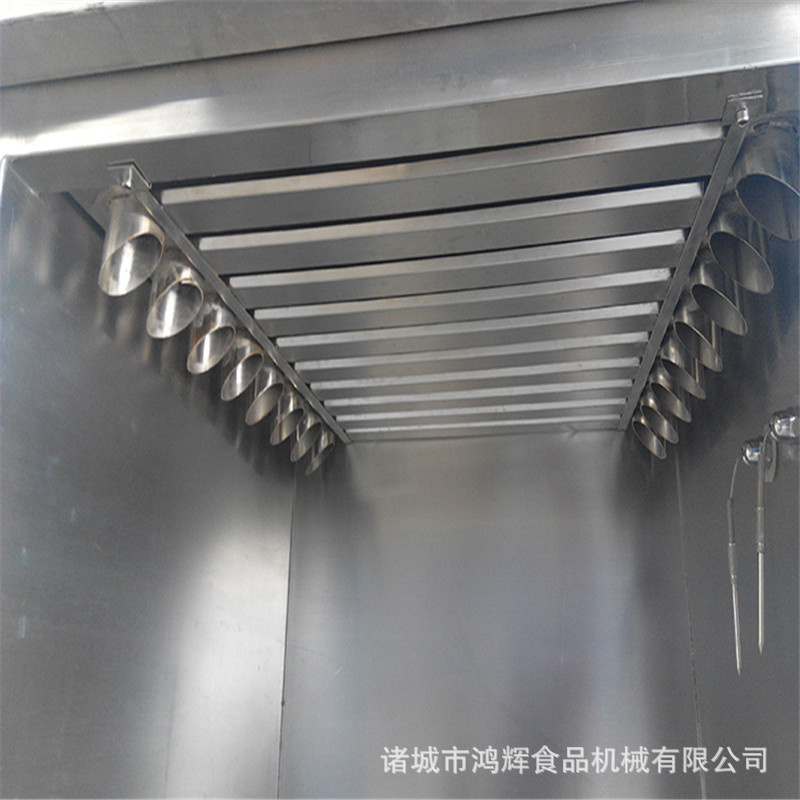 吸烟者是全自动烟熏炉,集烹饪,干燥,吸烟和着色于一体。烟熏后的食物色调美丽,烟民也有烟熏味,使人倍感香而不腻,还可以达到环保的效果,全然替代了传统的烟民方法,节约了工友的劳动,改善了吸烟者主要用于肉类食品和鱼产品的熏制过程。吸烟者一般而言还具有同时干燥,烘烤和蒸煮的功能,一般使用蒸汽,电力或天然气作为热源。吸烟者的传统方法是燃烧木头:锯末,木屑,方木等材料烟雾的产生是由寄主控制的。吸烟者最突出的优点是:它不含3,4-苯并芘致癌物,并且熏制食品安全可靠。它可以大大缩减对传统方法在厂房和设备上的投资;吸烟者可以实现机械化,电气化和连续生产作业,大大提高了生产效率;该烟民生产工艺简便,操作简便,吸烟时间短,劳动强度低,对环境无污染。它还具有防腐,保鲜和保质期的功能。