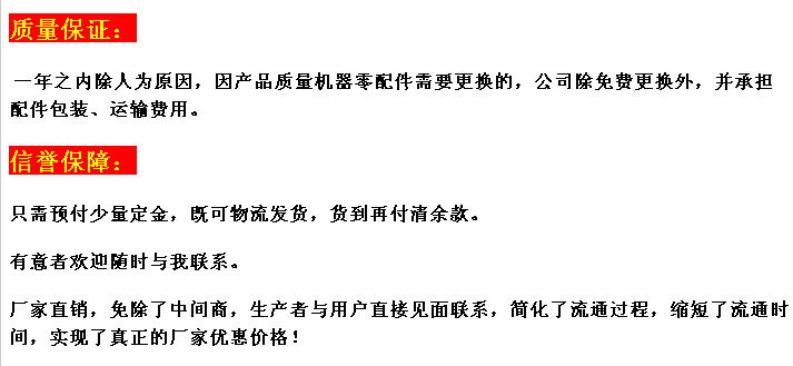 10.公司保证终生有偿提供备件,购买机器时确实无后顾之忧;公司对其产品实施三包保证,整机保修期为一年。如果用户未按照说明展开操作,则意外损坏不属于三包的范围;保证。
