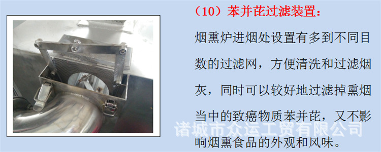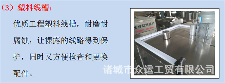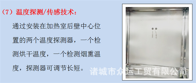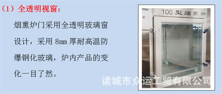 吸烟者,用于香肠,火腿,烤肠,烤鸡,熏鱼,烤鸭以及家禽,水产品和其他烟熏产品,开展干燥,着色和成型。抽烟
