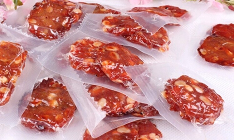 产品详情:[产品称谓]:秘制XO酱果仁金钱脯(真空透明装)