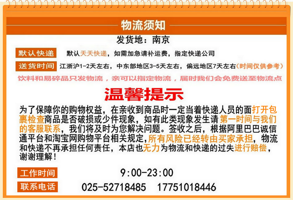 产品详情:食品是物流盗窃中较为严重的货品之一,因此在收货时须要留意检查外包装是不是完整。我们只能用心包装饼干,锡罐(饮品等),但我们不能保证物流运输过程中从未破坏或变形。这种物流损失将不予赔偿!如果您更顾虑此类产品的完整性,请细心下订单。我们不能保证货物在物流中完好。