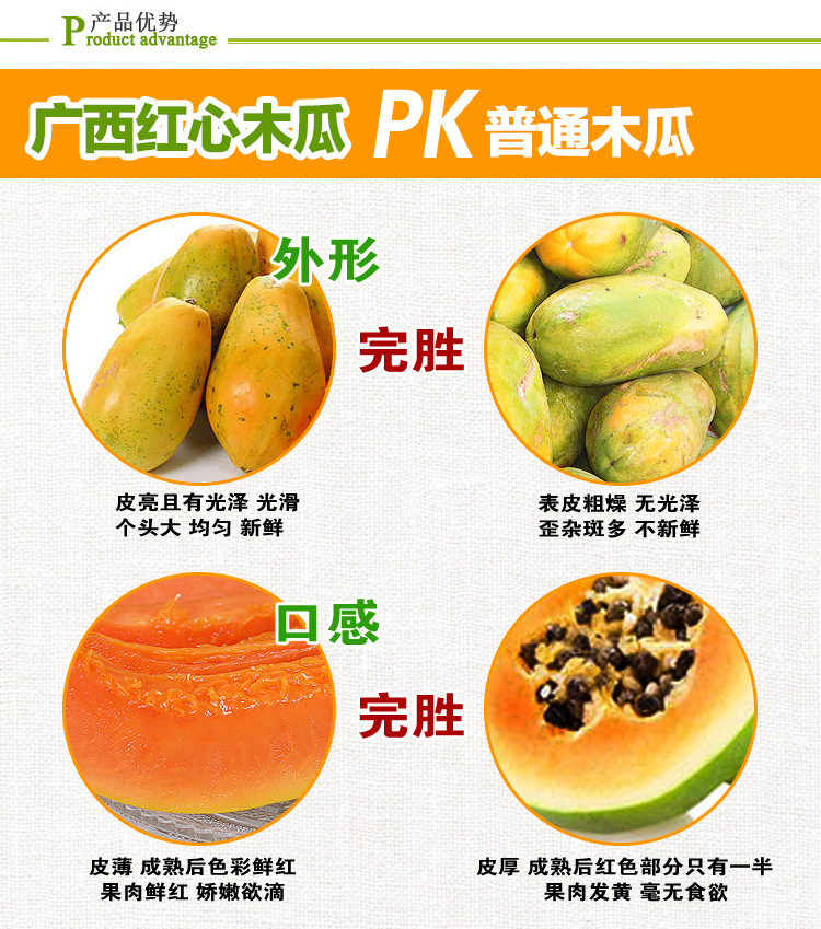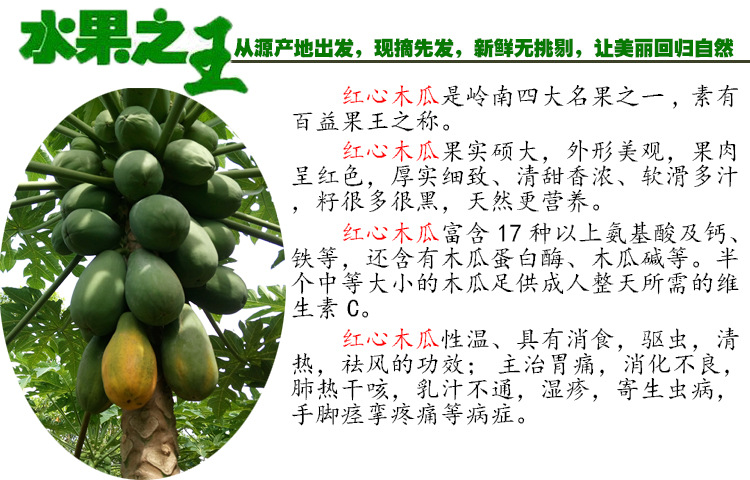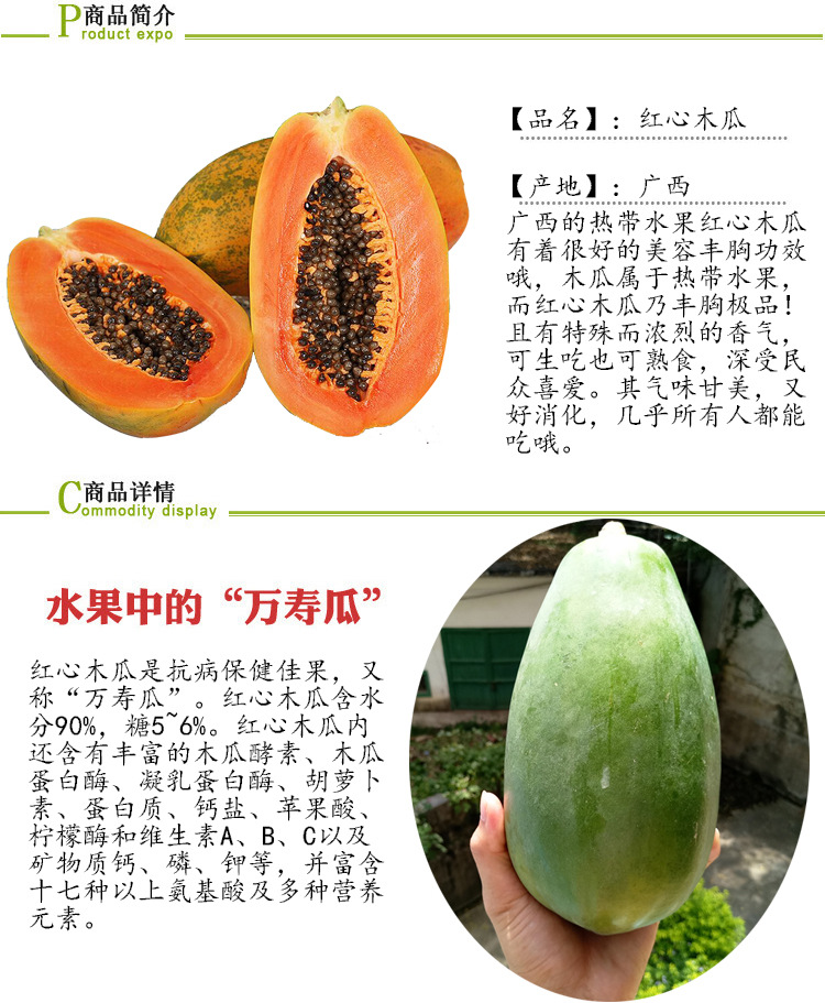 产品详情:木瓜有两种尺寸,一种是5斤,另一种是8斤。