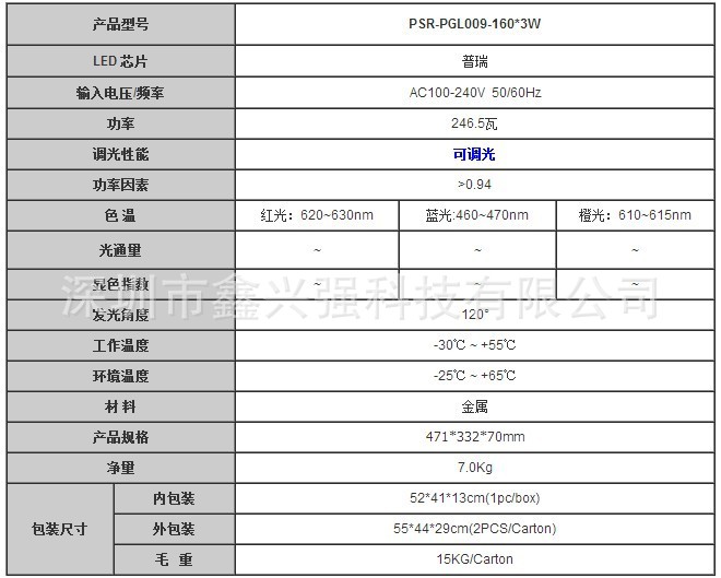 产品详情:1.160*1wled植物生长灯的基本描述参数: