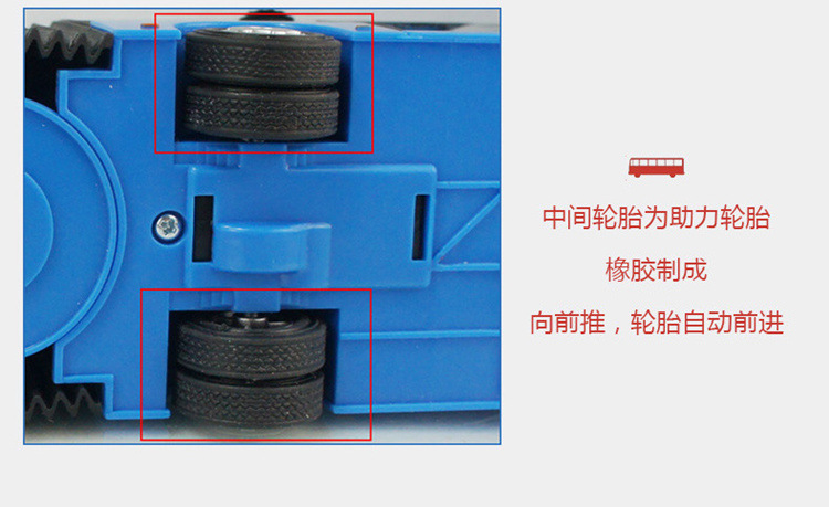 产品特点:主体由塑料制成,具备模拟设计和装饰。有驾驶者和乘客座席。底盘由塑料制成。轮子由橡胶制成。躯体的中部可以左右微微旋转。无声光功能。