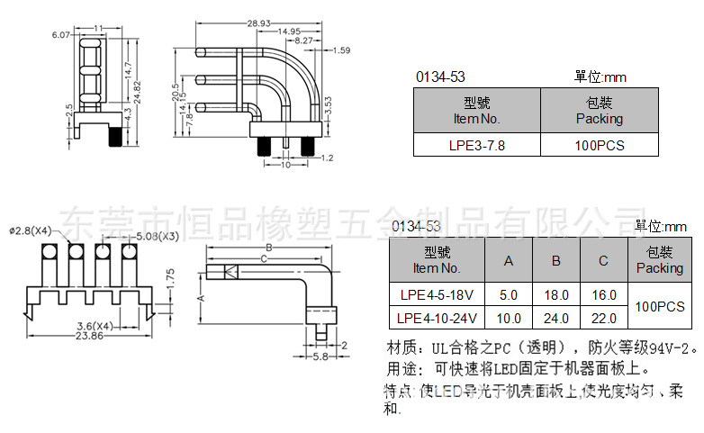 产品详情:材质:UL及格的pc(透明),防火等级94v-2。