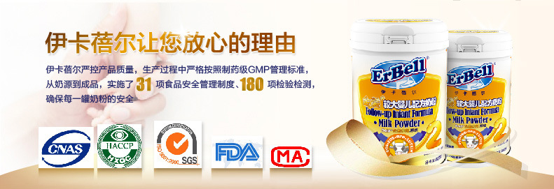 我们的质量:伊卡蓓尔series配方羊奶粉使用进口山羊奶源,富含73.6mg/l的核苷酸,使用国际食品法典委员会(CAC)制订的幼儿奶粉规范工艺配制了婴儿发育所需的多种营养素成份经过干湿复查处理,无异味,喝完后宝贝不会生气,味道纯正。