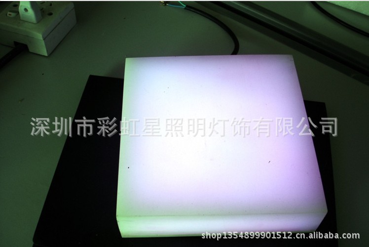外壳由不锈钢或进口高强度仿石或钢制花玻璃制成,表面坚硬,颜色自然。光源使用优质超亮led发光二极管,有着低功耗的特征(每块地砖的功耗为4-10w),寿命长(led寿命为100,000小时),耐冲击性和高可靠性。借助流明LED专用控制器,它可以实现各种动态功效,例如色彩缤纷的跳跃,渐变,还可以根据客户要求将其组合并排列成一定的动态图形或制成动态显示屏,并实时显示电脑的同步图像或预定图像。