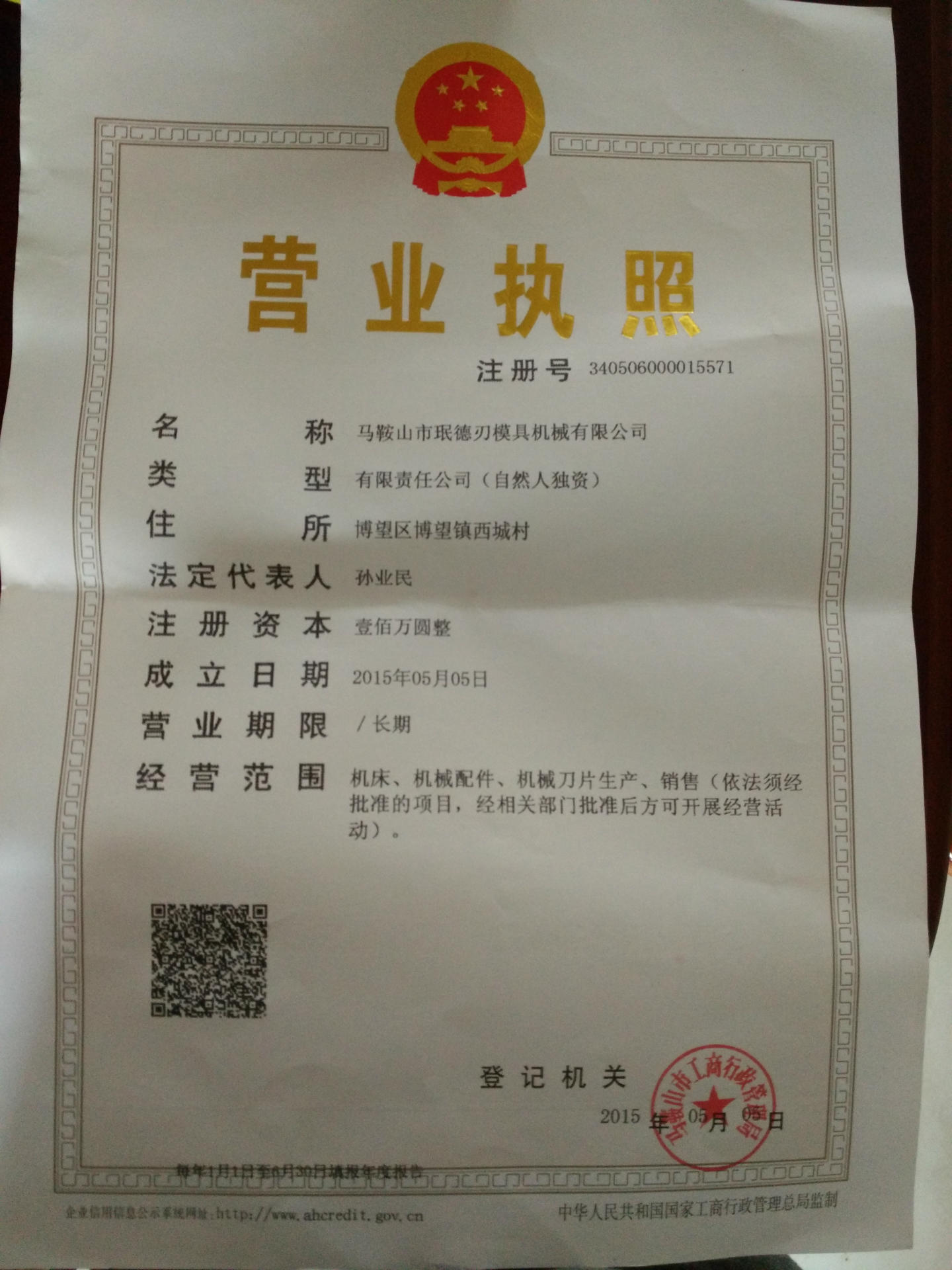 (1)接收单位:马鞍山市珉德刃模具机械有限公司
