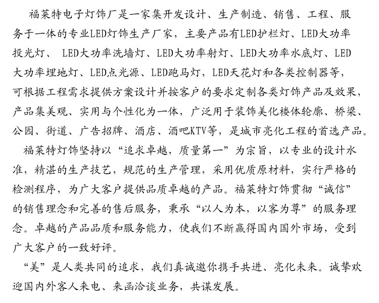 产品详情:福莱特电子灯饰主LED投光灯,LED洗墙灯,led大功率点光源,LED射灯,led埋灯,