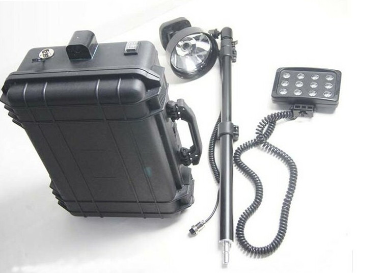 2.防护等级:IP65,可抵挡八级风,确保灯泡在各种恶劣环境下安全确实地工作;灯集成在盒子里,可以轻易放置在车内,减小空间占用,不毁坏灯和车内设备;灯的高度可以根据现场需在高度范围内随意调节,灯架可以作为单独的移动光源单独拆卸,展开现场调查;照明时间漫长40小时。