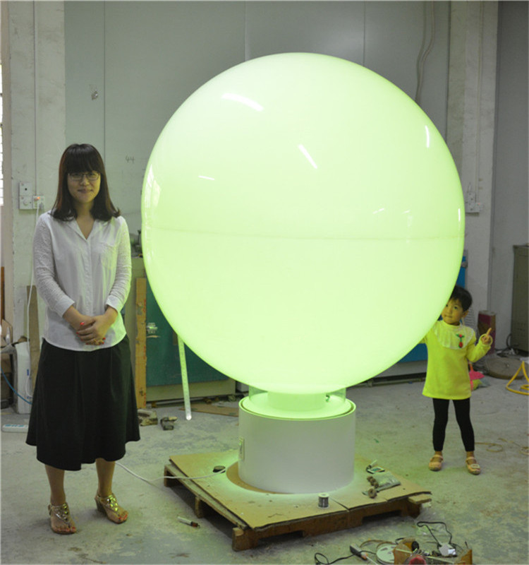 该产品的尺码可以定制。底座配备有可调速电机。球配备了led彩色字幕。球的表面可以用以相应的字体。