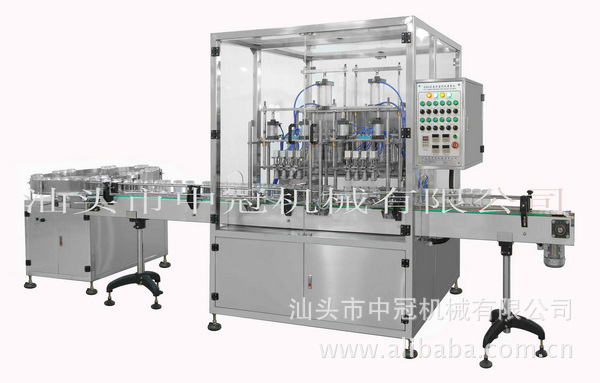本机机能配置:自动开瓶→自动送瓶→自动定量灌装→自动理盖放盖→自动盖锁加盖→自动取瓶,可配自动贴标或自动套标,也可自动消毒,真空包装根据需要开展配置。