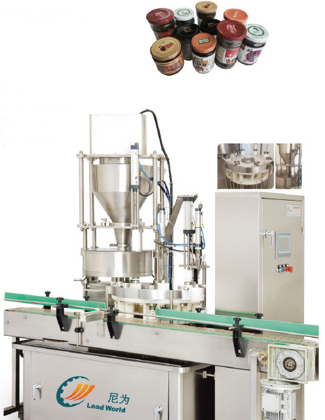 该机械适用于瓶装,马口铁罐,塑料罐和其他广口瓶器皿。主要适用于芥末酱,香菇酱,红油金针菇,海带丝,鱼酱,萝卜条,梅干菜,橄榄菜,杏鲍菇片,蘑菇酱,芥菜,香椿调味料,酸菜(毛)和其他酱菜产品。