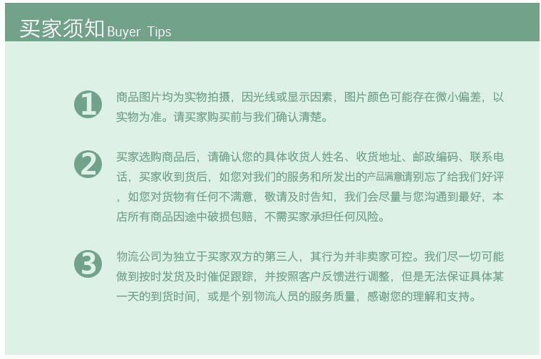 3.我们增加了购买者保护。[买方保护是指当卖方和买方加入了买方保护违约合约或有不诚实的行为时,阿里背景将首先根据准则向买方付款],因此您可以全然获释100心与我们协作。