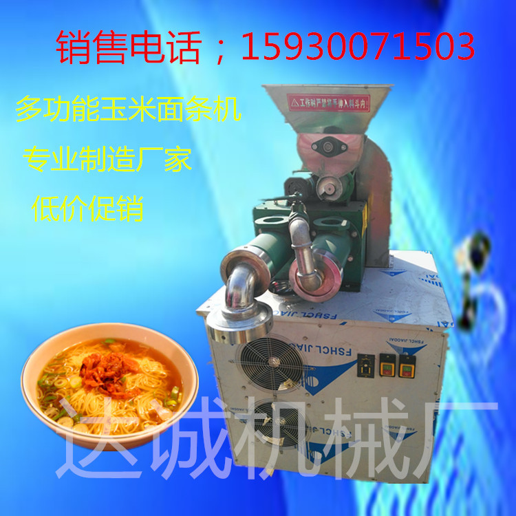 多功能玉米面条机也被称做五粒面条机。它不仅可以生产纯玉米面,还可以生产莜面,高粱,小米,豆面等多谷物面条,也可以使用浸泡2小时的大米,去皮玉米糁,高粱米等作为制作各种口味的杂粮面条的原料,以满足不同口味的消费群体。除了粉丝,小麦冷面等之外,您还可以使用大米制作具有多种功能的米线,这是高度实用。