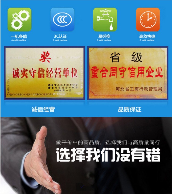 6.该机体积小,重量轻,能耗低,效率高。它可以用于固定操作或移动操作。它易于操作,简便易学,并且可以由一个人展开操作。