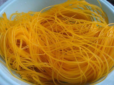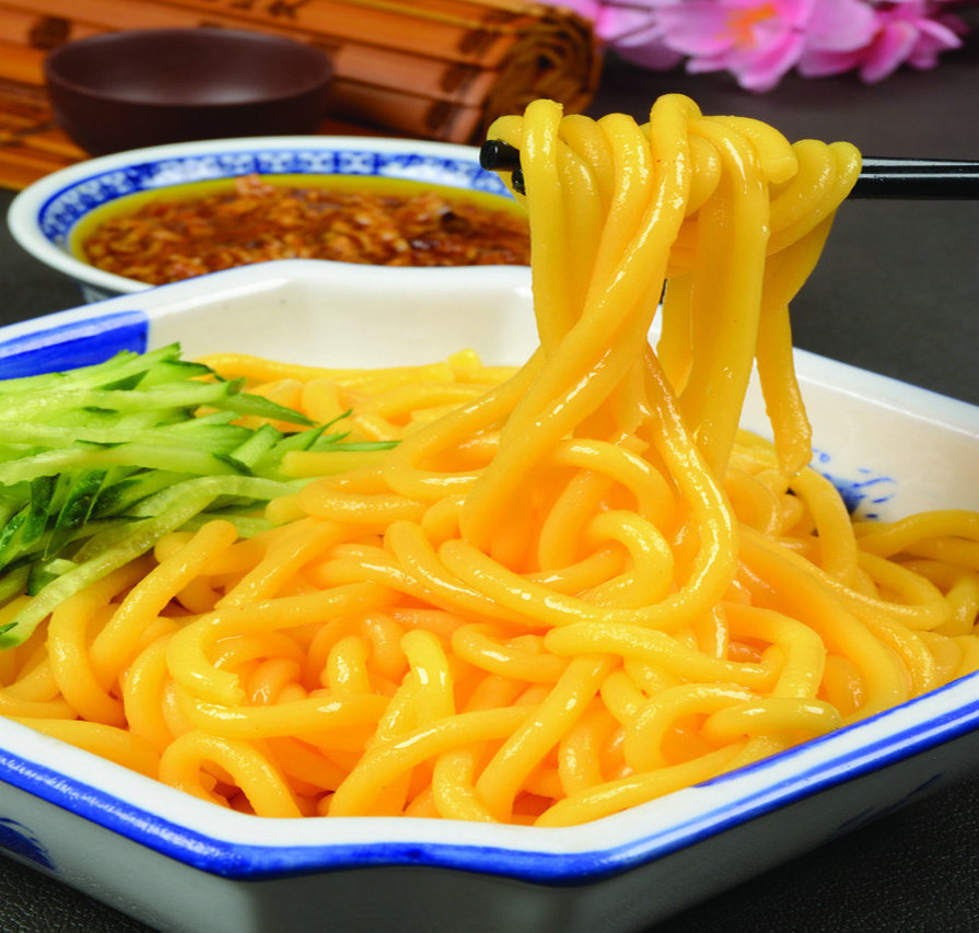 机器外出时,该机器的产品可以随时展开烹饪;当机器外出时,也可以将其食用。也可以将其煮沸,漂洗,冷面,炒面,也可以添加到各种可选成份中以制成肉丝面,鸡蛋面,辣面,炸酱面,甜面,咸面,五香面,麻辣面。以玉米面为例:玉米的市场价格为1.2元/kg,加工费(水电费,人工薪资等)为0.2元/kg,即玉米面的成本为1.4元。每公斤250克超级市场的玉米面条售价为2.8元,即使在大型农贸市场上,玉米面条的售价也可以达到每斤2.5元左右,仅加工1千克玉米面条就能赚2元,每天生产500千克。
