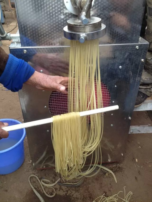 多功能玉米面条机也被称之为五粒面条机。它不仅可以生产纯玉米面,还可以生产莜面,高粱,小米,豆面等多谷物面条,也可以采用浸泡2小时的稻米,去皮玉米糁,高粱米当作制造各种口味的杂粮面条以满足不同口味的消费群体的原料,以及粉丝,小麦冷面等,也可以用于生产多功能的面条高度实用。