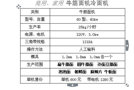 根据数据制成的牛筋面的特性是:无任何添加剂,牢固,耐泡沫,连续条,不烂,不粘,容易储存;化解了风干后长期存放在后牛筋面无法用到和呆滞的疑问。化解了不能批量生产和储存牛筋面的疑问。