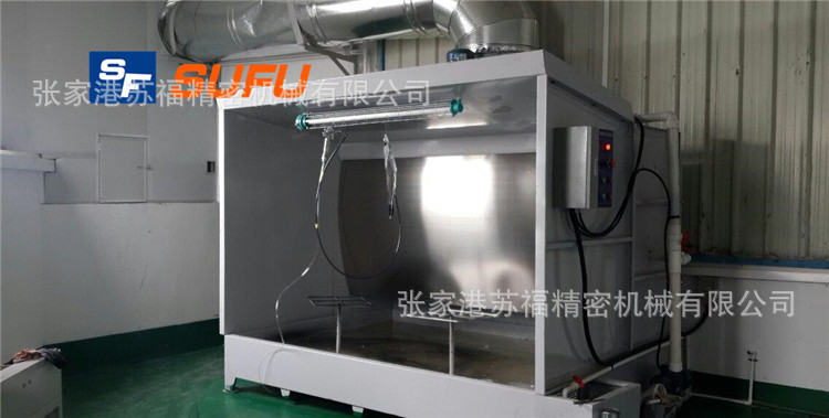 水幕柜的特征是可以在喷涂时间内直接将余下的涂料粉末命中水池或水幕表面,通过多层水幕过滤喷漆过程中产生的味道和每小时的涂料粉末。通过排气扇排出喷漆室,从而洁净了喷漆工作环境,保障了人体身心健康,并可以加强被涂工件的表面光洁度。