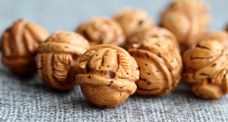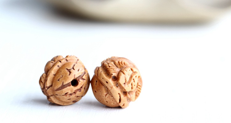 桃芯(山桃胡)又称wild蟠桃,寿星头:色调为栗色,光滑且圆形,兼具自然雕刻图案,直径为0.8-1.8mm,