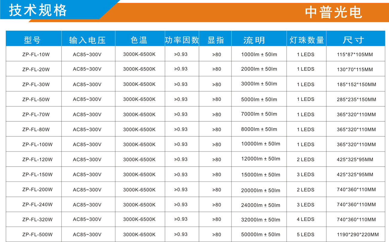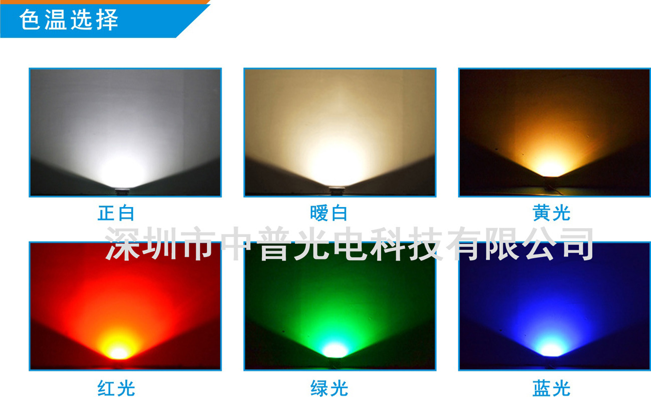 - 色温2700K(暖白),3000K(暖白),3500K(暖白),4000K(正白),5000K(正白),5700K(冷白),6500K(冷白)