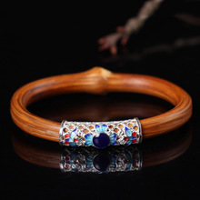 金刚藤手镯镶嵌纯银管牡丹孔雀羽毛药藤鸡血藤正品