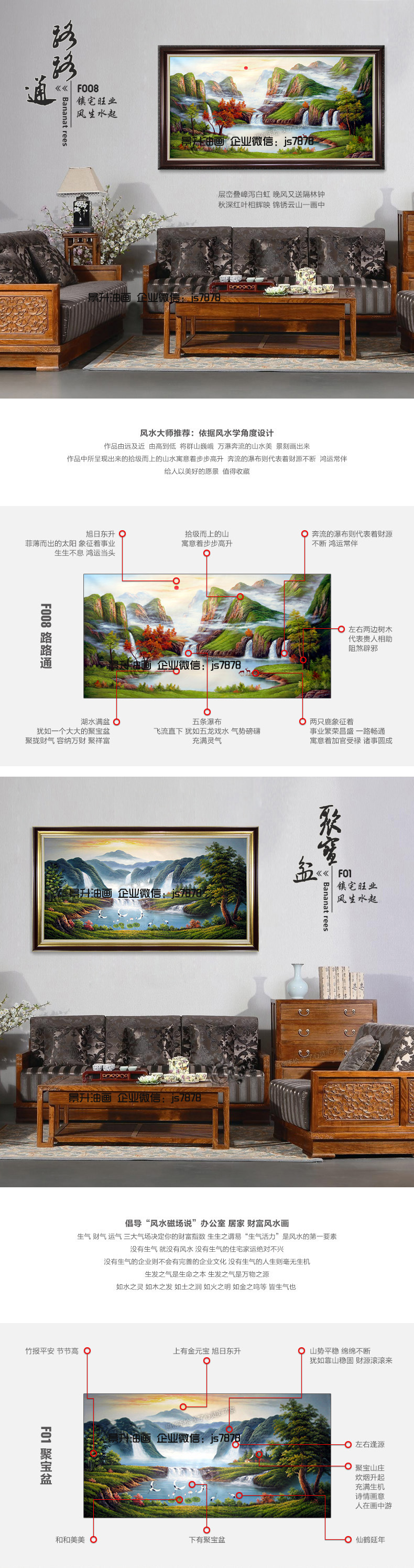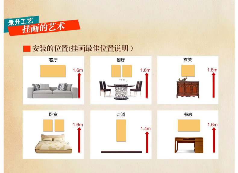 义乌景升工艺品有限公司使用含有空背设计的天然实木框架(背面是空的),因此感觉到更轻盈,纯手工制作与市场上常见的无框油画有所不同,(环保油画=帆布布+实木相框+环保涂料)。由于油画的重量,请不要猜测纯手绘油画的价值。为了您和您妻儿的健康:记住远离胶水污染,回绝所有危害您健康的因素,让健康永远在我们身边。