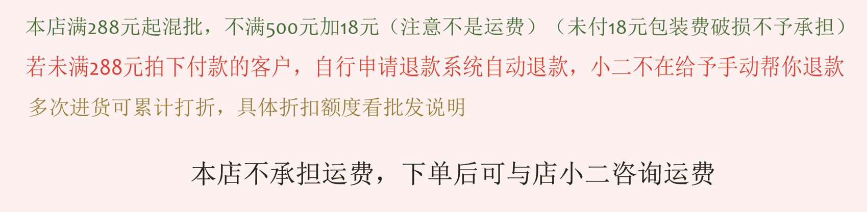 强烈提议您自助订购,混装起价为288元,并根据供应信息[很小批号×整数]下单,包装费10元以内(500元以内)。