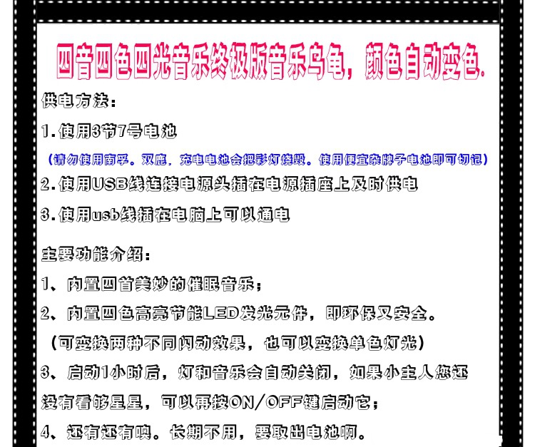 - 灯光颜色蓝光乌龟,粉色乌龟,绿色乌龟,黄色乌龟,果绿色乌龟