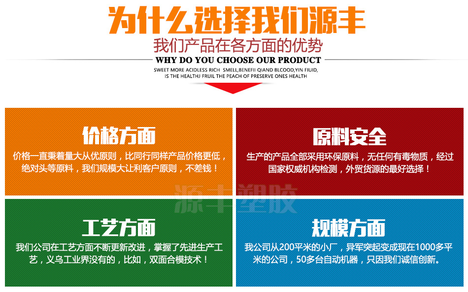 源丰塑胶制品有限公司座落义乌国际商贸城附近。是一家专业为大型企业和事业单位提供广告产品,精美礼品,促销礼品等的生产企业,秉承以质战胜,信守信誉,追求理想,勇敢创新,勇敢创新的精神上。根据市场需要,我们为客户提供实用,喜爱和收藏价值的广告和促销礼品。公司具备礼品策划,设计,开发和生产的高级技术人员和管理人员精心打造创意,精心选取,精心包装,精心为客户量身打造,并推出了各种精美诱人的商务礼品!以质量获胜!源丰一贯的宗旨源丰firm追求卓越的承诺源丰不紧的工作客户满意度源丰永恒的追捧自2004年以来,我们公司始终在为主要品牌公司设计礼品和广告促销产品。租赁借出了我们公司普遍的供应渠道,细密的设计能力,不错的信誉和服务,并因为每个顾客和永远服务而受到客户的好评;将美丽与永恒带给所有用户。凭借我们最先进,现代,时尚,感性,高效和高质量的产品,让用户充分感受生活的美丽。以上产品可根据客户需要定制,并印有logo一切为了用户的需要,追求卓越是源丰的宗旨;诚信立足,创新致远,客户至上是源丰的理念;满意度,信任和支持是源丰的希望,互惠互利是源丰的目标。通过我们的产品,您可以充分提升您的企业品牌形象。致谢您的关注并期望为您提供更好的服务。让我们共同努力,协同创造辉煌。欢迎国内外新老客户随时致电或来信!源丰带给您无尽的满足感!pvc软胶;pvckey扣;pvc软胶皮标;pvc拉头;pvc软胶皮标;pvc商标;pvc胶章;pvc小商品;pvc标牌;pvc行李牌;pvc拉片;pvc玩具;pvc魔术贴;pvckey套;pvc鞋花塑料加工;广告促销礼品;手机配件;手机挂件;工艺礼品加工装置;服饰辅料注塑/注射;挤压/挤压;其他橡塑加工技术;环氧处理;礼品注塑;模具加工;滴塑/微注射塑胶焊接;乙烯基塑料;其他玩具加工技术的加工;样品处理;采用提供的材质展开处理;OEMprocessing;ODMprocessing;加工图纸;其他配件;玩具;礼品和工艺品;包装;办公文化和教育;衣装和鞋类;全国的超级市场和零售;港澳台地区;日本;北美;南美;西欧;东欧;东亚;东南亚;中东;世界