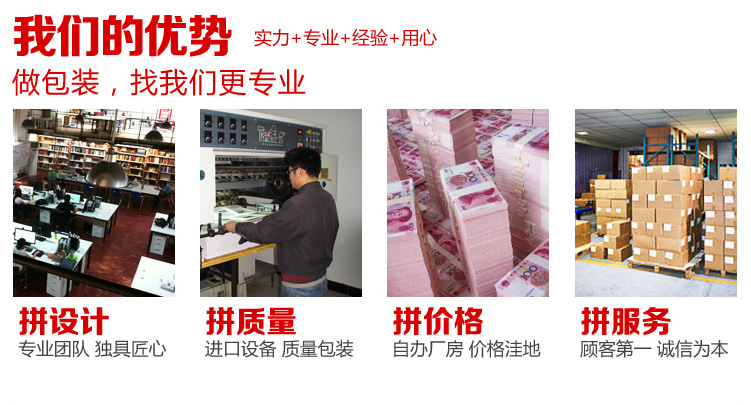 产品详情:武汉钱库包装有限公司是一家集设计,生产,销售于一体的新型综合包装设计与生产企业,始终致力于糖果,月饼,茶,酒,z子,医药,保健礼物等产品的包装。经验丰富,极富创造力,热忱和敬业的工作团队,我们以敬业,奉献和专业的态度不停引入新的经典创意为客户服务。