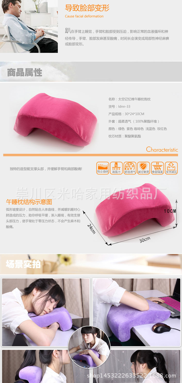 记忆棉卡通绣花午休枕7字枕办公室午休枕趴睡枕厂家直销
