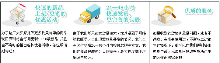 (2)由于每天的交货量很大,我们将竭尽全力通过电话机通知缺货的产品。由于产品的盈利低,收到产品后,请根据发货清单中指示的缺货产品申请退款,并且不会再度发行。